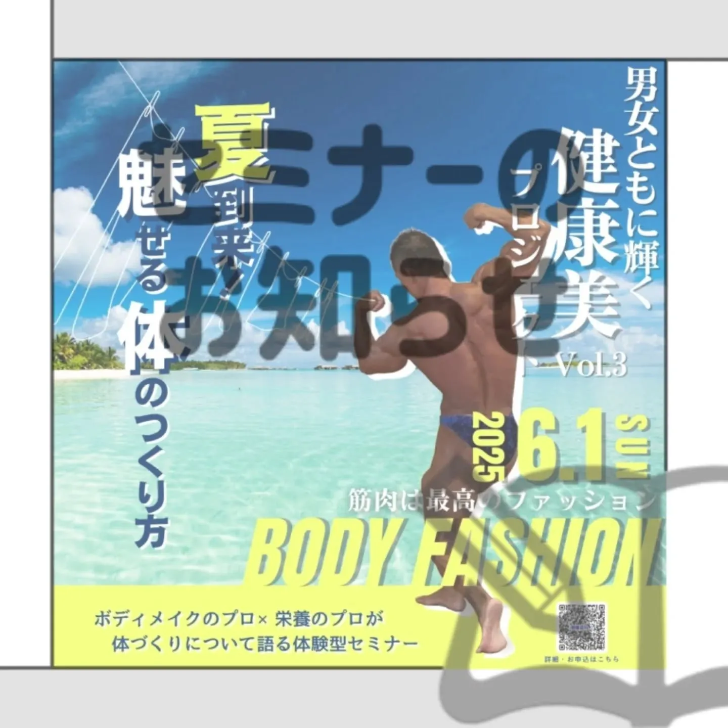 【終了】男女ともに輝く健康美プロジェクトVol.3 ~夏到来!魅せる体のつくり方~筋肉は最高のファッション。ボディメイクのプロ×栄養のプロが体づくりについて語る体験型セミナー【詳細】開催日:2025年6月1日(日)時間:9:30~12:00(受付9:00~)場…